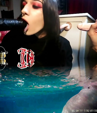 Possessed Goth Tranny Trap Fellates 3 Cocks Sloppy Bukakke Deepthroat Footjob