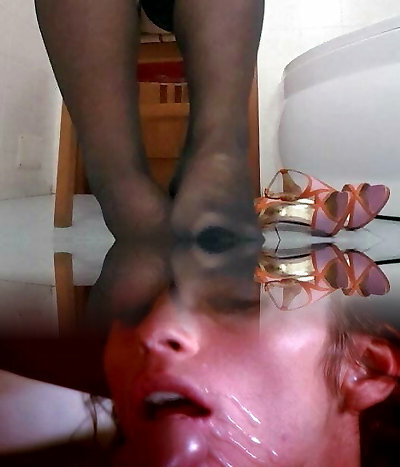 Crossdressing slut shoots a load all over female domination Nylon Jane's stockings and feet