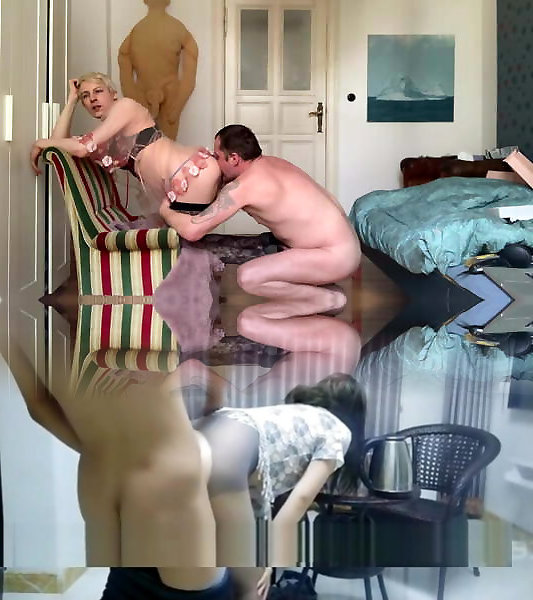 Blond haired ladyboy with small dinky gets violently analfucked at home