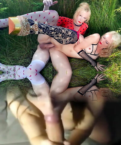 Jaw-dropping girl getting fucked hard by shemale outdoors