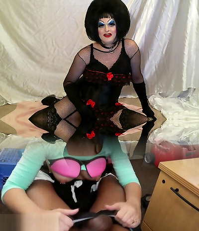 Dolled Up Drag Queen Wedging BBC Dildo and Smoking