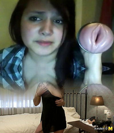 Mesmerizing tbabe in lingerie masturbating with a man chowder toy