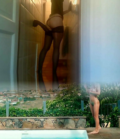 Satin nightdress dildo railing close up