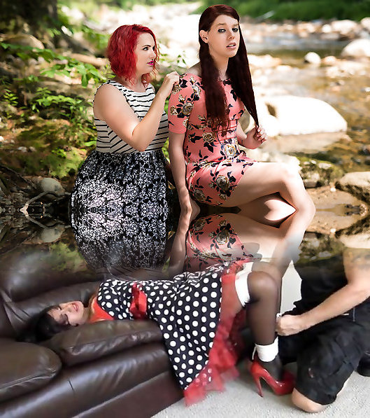 2 beautiful transgender princesses in stockings likes arse ravaging in sofa