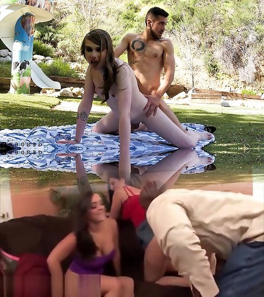 Bitchy she-male Skylar Adams is happy to be drilled outdoors during picnic