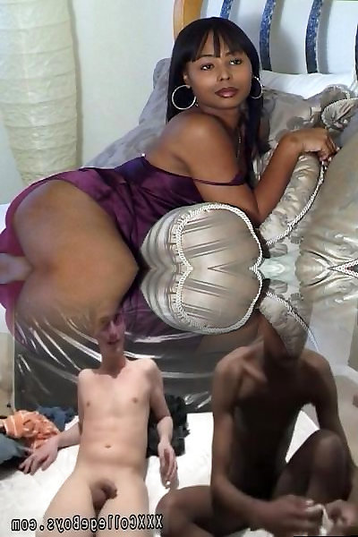 She-male with lengthy ebony hair and super-cute hooters gives 2 boys a deep blowjob