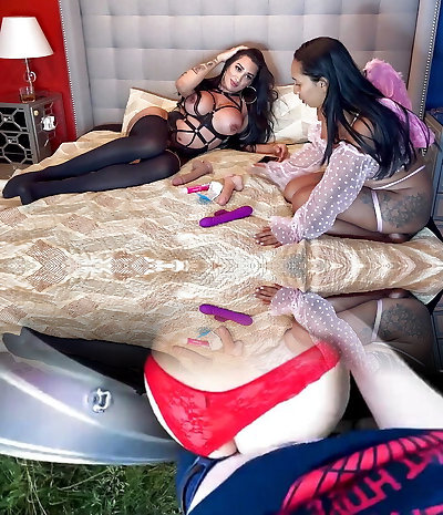 Bootylicious Tgirls Jade Venus & Izzy Wilde enjoy DP with a busty blonde