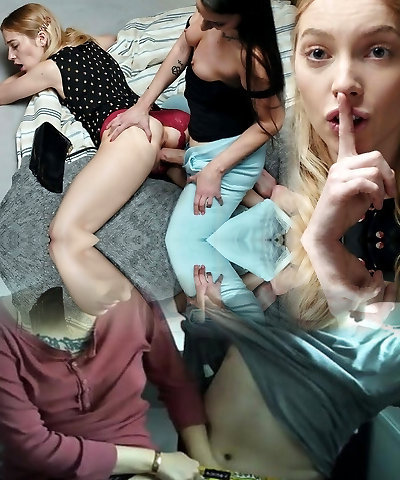 Skinny tgirl voluptuously cums while her stepfather ravages her sweet hole.
